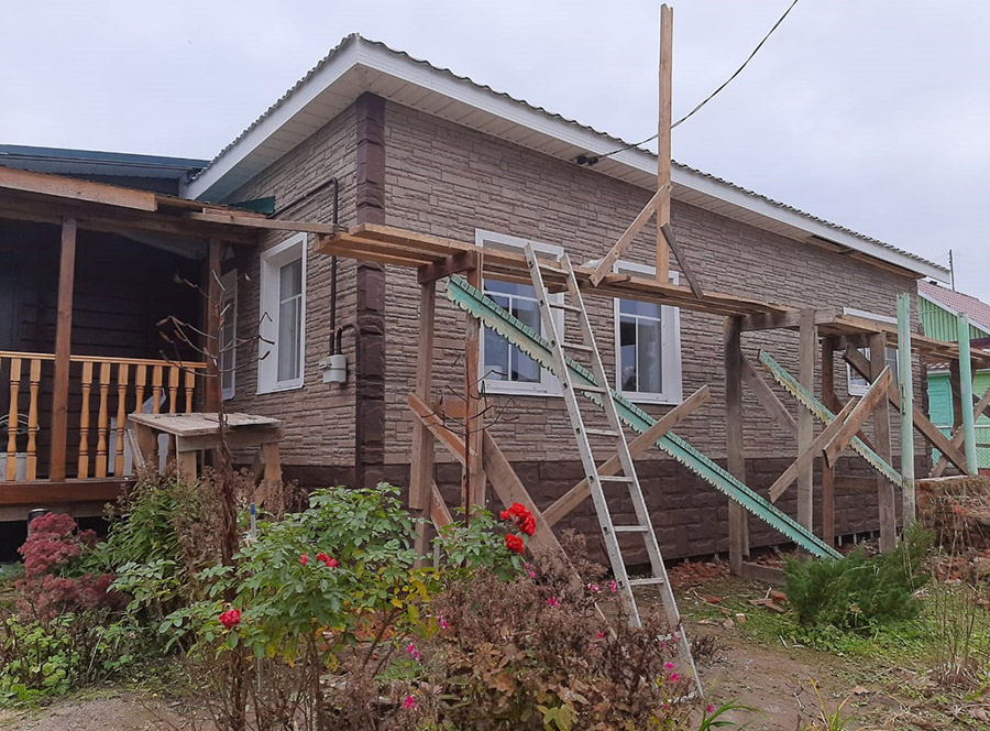 Сайдинг может визуально выровнять покосившуюся стену дома. Разумеется, если наклон не превышает допустимую норму и не угрожает безопасности.