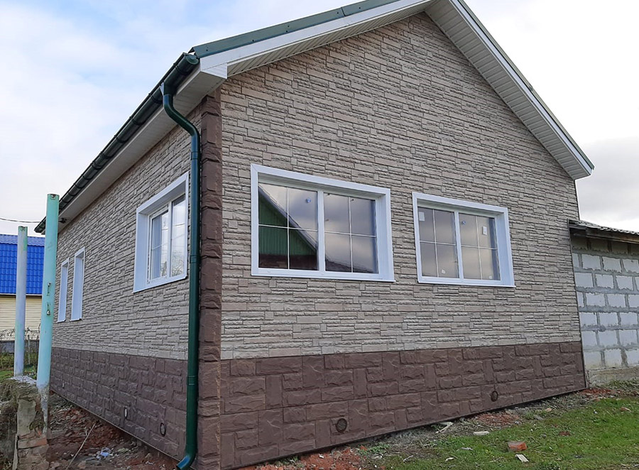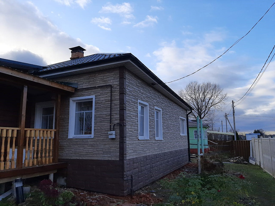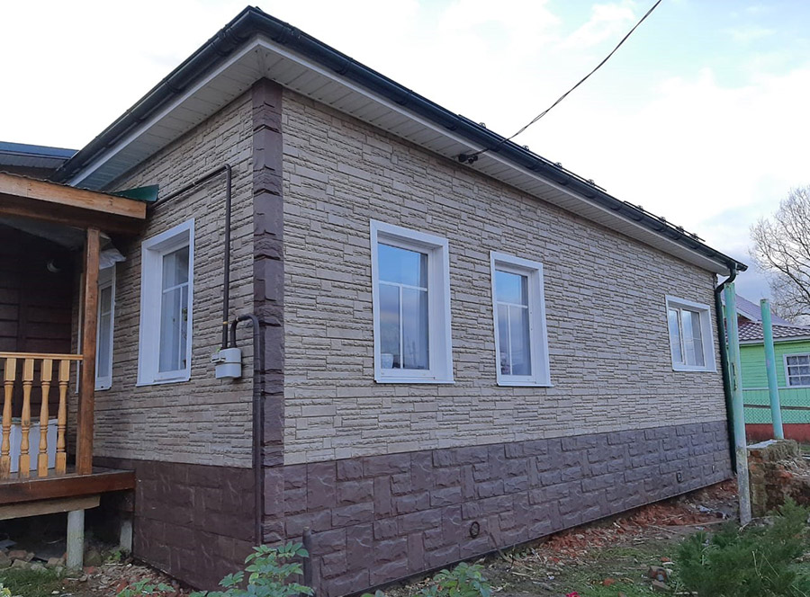 Утепление фасада дома и закрытие декоративными панелями под камень. Сайдинг частного дома.